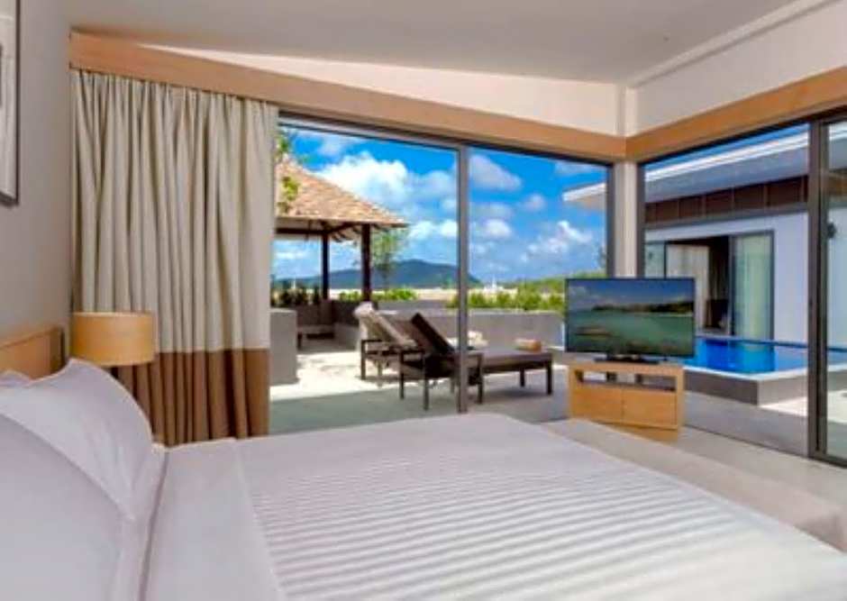 Casabay 4 Bedroom Private Pool Villa with Partial Seaview is 3767 square feet and includes a king-size bed 150-183 width plus living room and balcony.