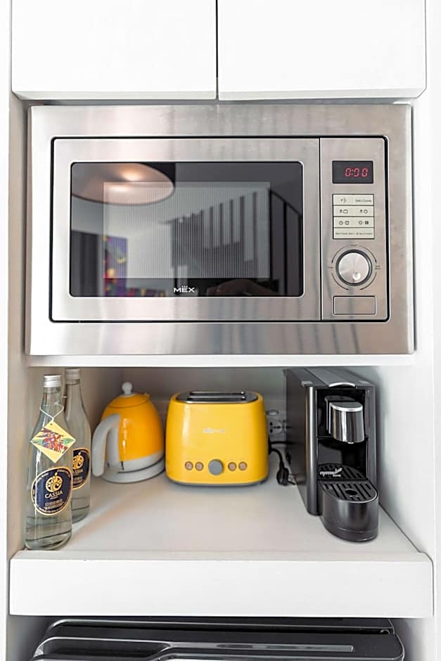 All the modern comforts await - king-sized bed, snazzy living room, fantabulous