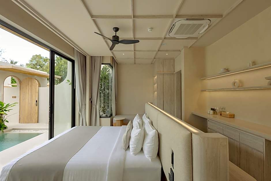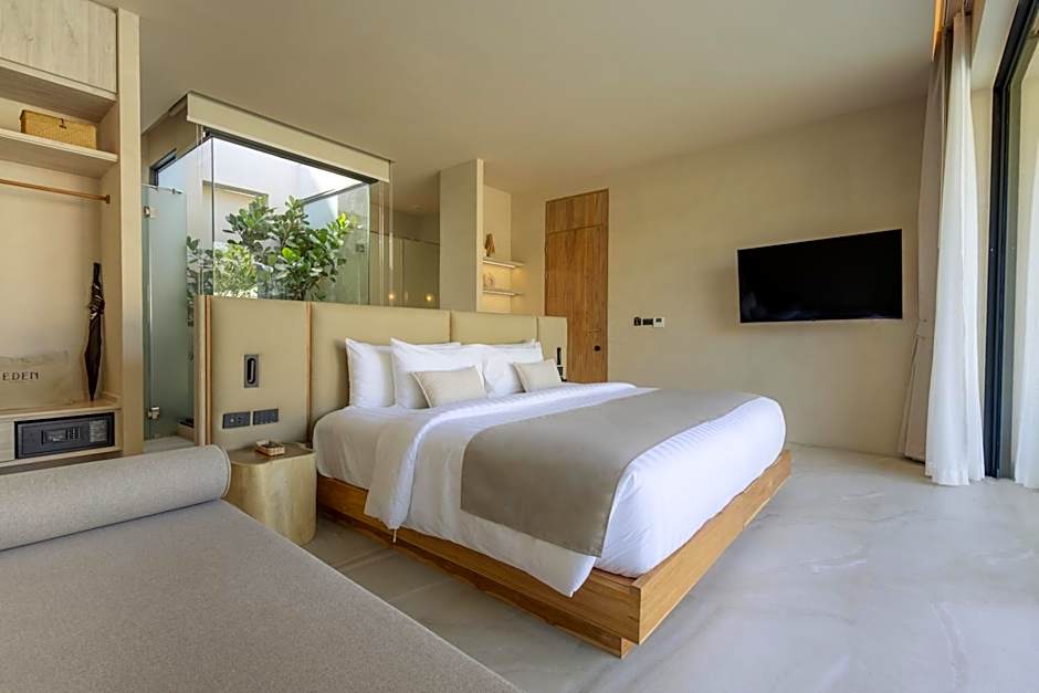 Each private suite is equipped with a terrace overlooking a lush tropical garden, a 55"smart TV, a bluetooth speaker with wireless charging, a complimentary set of mini-bar, a walk in shower with an indoor garden and free toiletries,