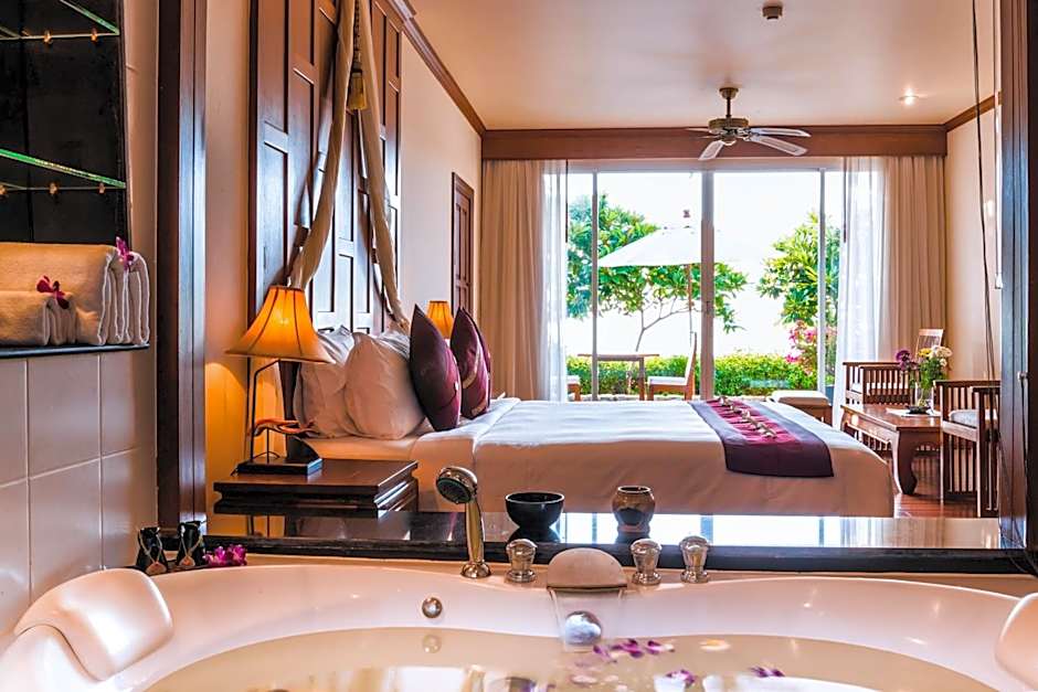 Featuring locally-crafted decorations, this air-conditioned suite comes with a private terrace with sun decks that opens up to views of the swimming pool and the ocean. An en suite open bathroom comes with a spa tub and a separate shower and free toiletries. Complimentary bottled water and tea/coffee facilities are replenished daily. This room is located on the upper floor. Benefits include: - Complimentary welcome drinks and cold towels upon arrival - Nightly turn-down services