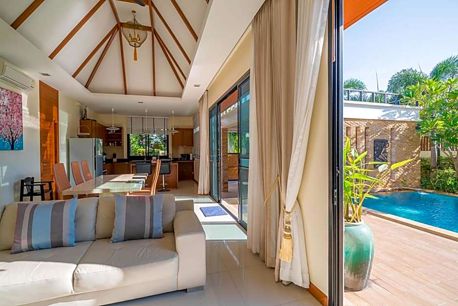 The villa comes with 3 separate bedrooms each with its own private entrance from the poolside. It also has 2 sunbeds, a Thai-style open pavilion and a large private pool.