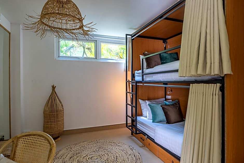 Connect with fellow travelers in our affordable two bed Mixed Community Dorms! The perfect choice to rest and recharge for a day of exploring, enjoy your own bunk bed, an individual storage locker, and access to a shared bathroom located at “The Selina Home”. The room rate includes a welcome drink per stay. Towel Service available with a refundable deposit of 200 Baht per towel. (Photos are for illustrative purposes only. Actual room interiors and views may vary by location within the resort.)