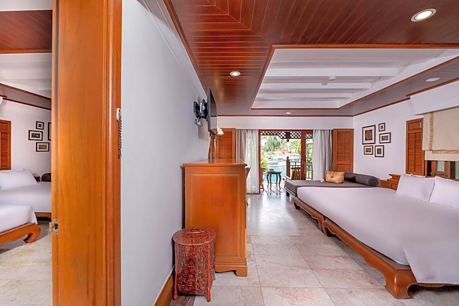 Boasting an outdoor terrace with a direct access to a quiet area of the pool, this air-conditioned unit is elegantly furnished in a traditional Thai style with marble and teak wood. It includes a seating area, a flat-screen cable TV, and a safety deposit box. Guests will find a shower, a bathtub and free toiletries in the private bathroom.