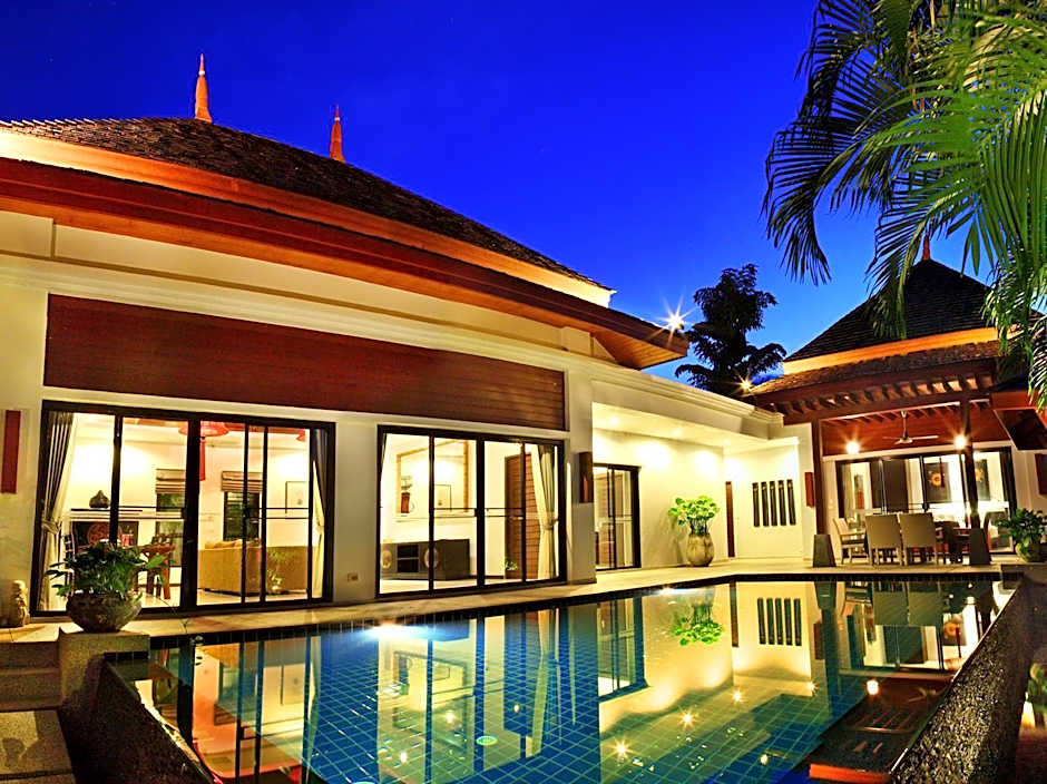 Large villa features an outdoor terrace with dining area and a tropical garden with an outdoor pavilion and rain shower. The villa comes with two master bedrooms each with a King-sized bed. The third and fourth bedroom comes with a double or twin bed. A private swimming pool is available.