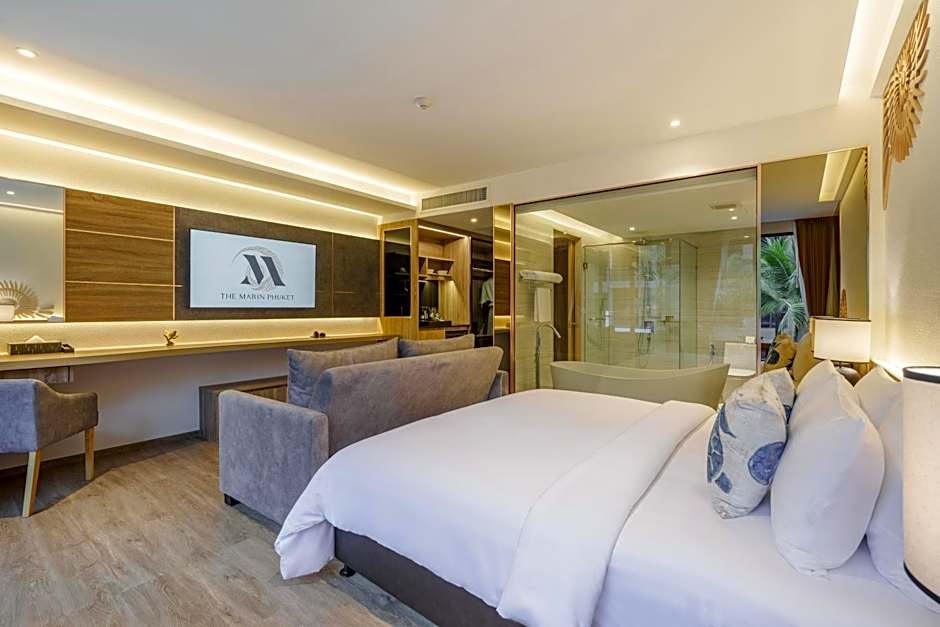 The Marin Phuket Kamala Beach presents an array of exquisite room types for guests to choose from, ensuring a personalized and lavish experience. Whether you opt for a Deluxe Room overlooking the lush gardens or treat yourself to a spacious Suite with a private terrace and stunning sea views, each accommodation is elegantly designed for comfort and style. Immerse yourself in luxury with amenities such as plush bedding, modern furnishings, and sleek bathrooms, promising a restful and indulgent stay.