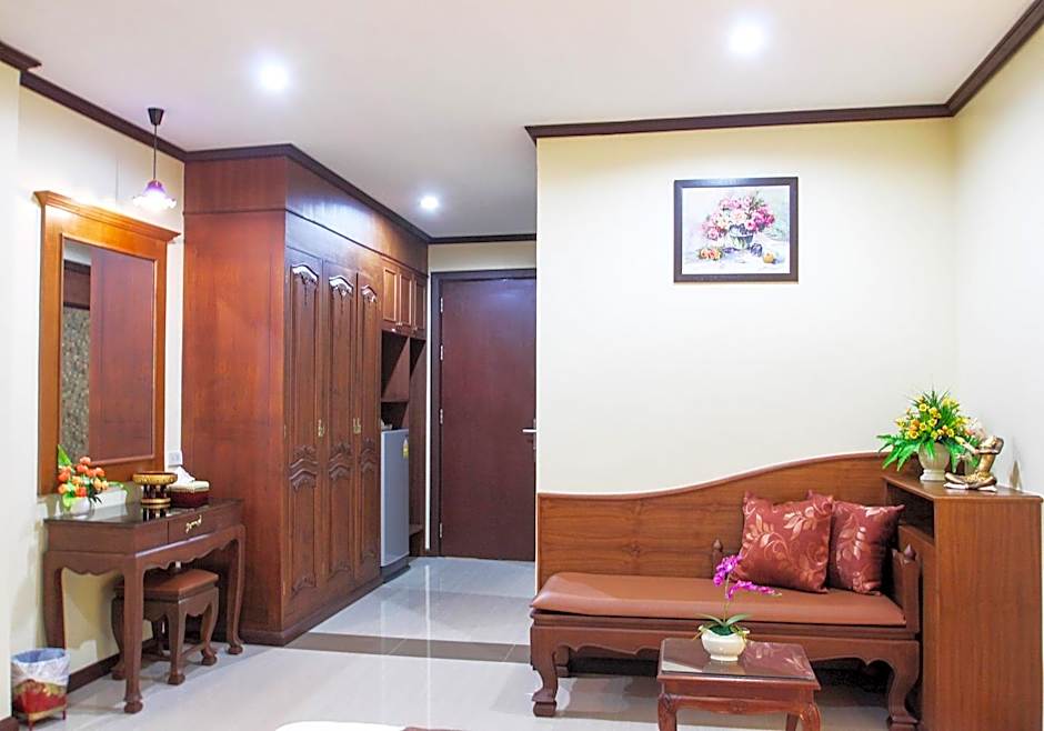 It's gonna be long but trust me it is worth reading- I'm givin' u a detailed description of the hotel in depth. At first, I was a little bit unhappy because the breakfast was not included in the price. And, we had to pay another 60 baht for it. But, well, it was purely our misunderstanding since it was clearly stated in the description on booking.com that it was available but we needed to pay on top of the accommodation price-so no complaint for that. For myself, if I had read it more thoroughly, I might have chosen another hotel with either lower price or breakfast included. I found it a bit too pricey. But, what could I do since I arrived almost midnight and it seemed to be the best accommodation around here. So, I went up to the front desk & paid for the stay and of course for the breakfast. I needed some breakfast so i had no choice but to pay extra. The lady behind the counter was super helpful & polite and smiling all the time- hey, good first impression! The parking lot was spacious and the reception area was neat, clean, and professional looking. Walking up to the room on the second floor since there was no elevator. The light in the walkway was well-lit so I didn't feel spooky despite the antique-looking decor. The room was peaceful, fully furnished, super spacious with hot tap. The bed was so comfy. In the morning, I went down to the dining area for the 60 THB that I paid for. Seriously, I was so so amazed with the breakfast. I think 60 THB was too cheap for what the hotel had offered in the breakfast buffet line, yes, it was breakfast buffet- like all you can eat kind of thing. They had boiled rice with different yummy Thai dishes, tea, coffee, milk, juice..basic continental breakfast (cereal etc.) all the way to full English breakfast with ham, sausages, fried eggs, toasts..and some seasonal fruits. I thought I was gonna be disappointed that I had to pay extra for the breakfast...