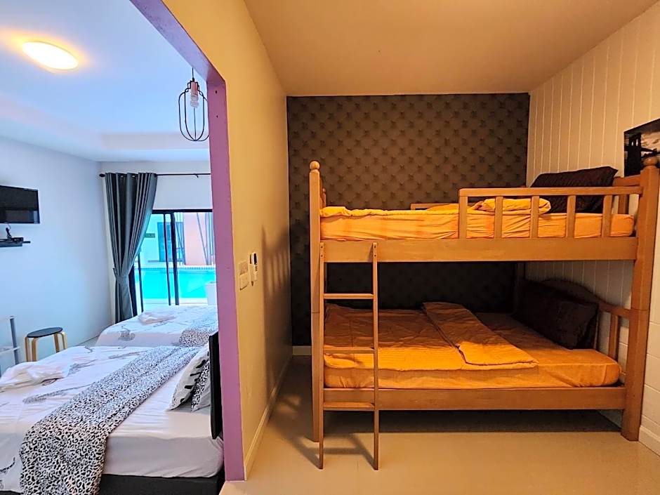 Two pools provide different day-by-day moods: an outdoor infinity pool reserved for adults and a kids-only pool with a shallow end for younger swimmers. The on-site restaurant, ห้องอาหาร/ภัตตาคาร #1, serves American cuisine in a family-friendly setting, turning meals into a cheerful part of the tropical escape.