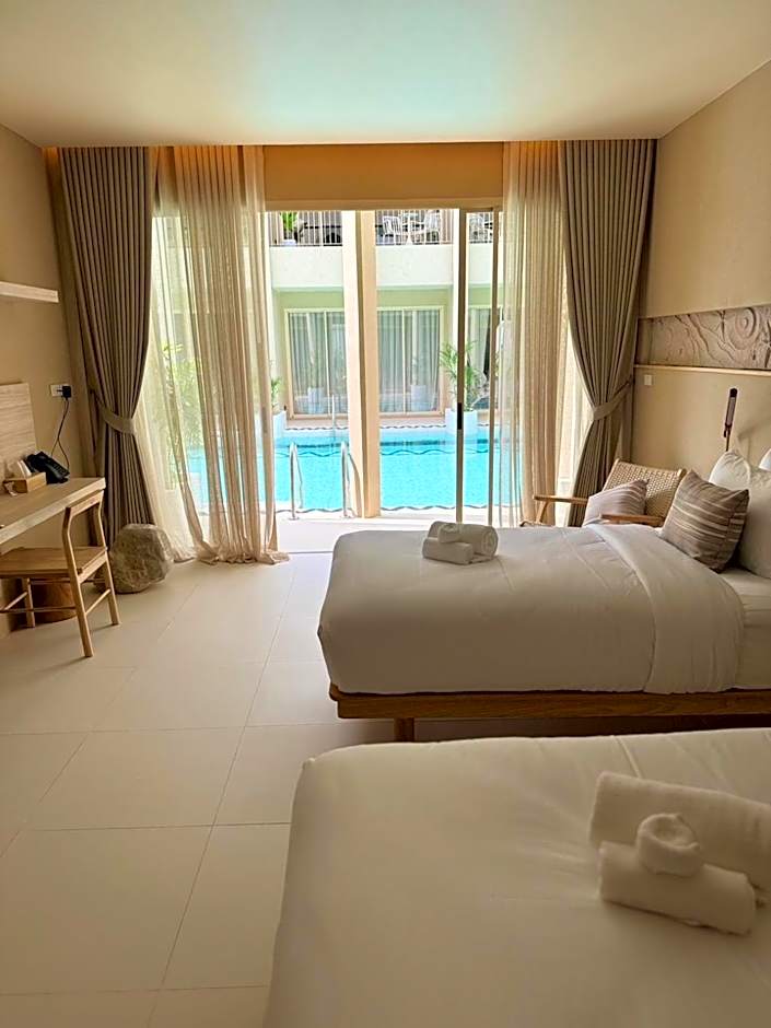 This twin room features a pool with a view. The spacious twin room features air conditioning, soundproof walls, a terrace with pool views as well as a private bathroom boasting a bath. The unit has 2 beds.