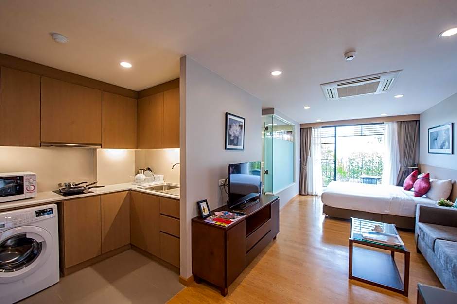 Staying in comfort comes with two well-sized apartment-style options. The Studio Suite covers 452 square feet and comes with a king bed, non-smoking, and can accommodate 2 adults and 1 child, with kitchenette options available. The Suite, 1 Bedroom offers 646 square feet, also non-smoking, with a king bed for 2 adults and 1 child, plus a balcony for fresh air and garden or terrace views.