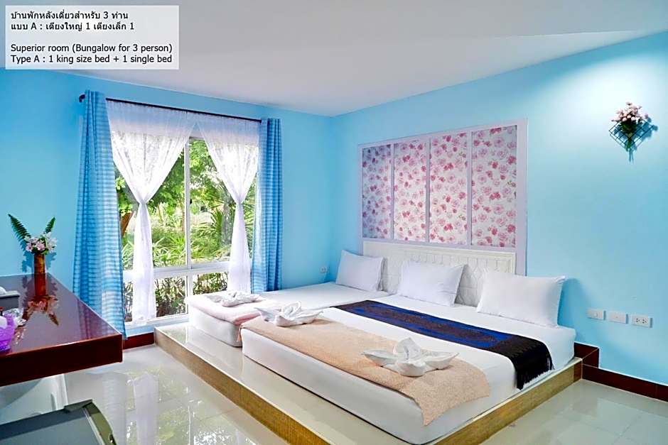 Dining is convenient at the on-site restaurant, ห้องอาหาร/ภัตตาคาร #1, where meals are ready without leaving the property. Payment accepts cash only. Several room options are listed, including Superior King, Superior Triple, Standard King, Standard Triple, and Budget King.