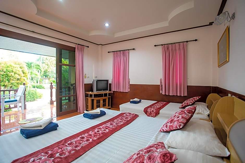 The Resort is not directly on the main road and you need to walk about 200-300 m on a small road which is a lot if you arrive with heavy luggage. It is about 2,5 km from the city center (about 30-40 minutes walk), 3 km from Thongsala pier, so you will need a scooter to move around (or a taxi 100 THB one way which can be arranged at the property or you just stand on the main road and stop any collective taxi). The owner is nice but don't expect any help in booking the tours, ferry tickets, scooter rental, etc. There is also no restaurant and no bar. I had many ants everywhere in my room, and there are many mosquitos in the evening, so don't forget to bring a mosquito spray!