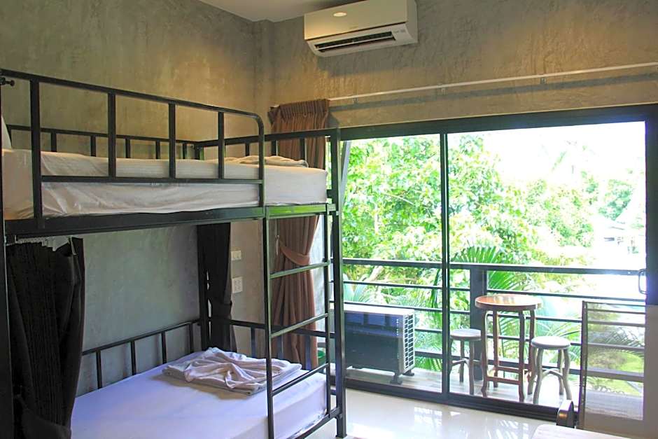 This bed in dormitory has a balcony, toaster and air conditioning.