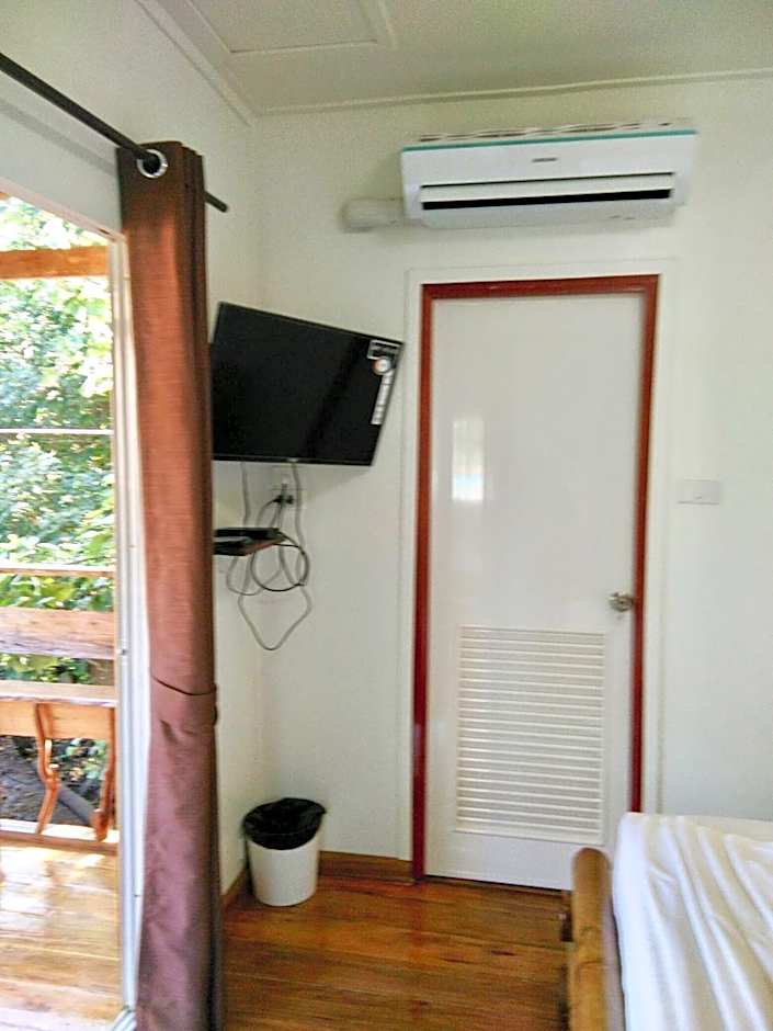 The rooms are set in a lovely garden and soon after arriving we were watching large butterflies from our hammock on the deck. The staff were kind and helpful, they made up the room every day. The location was perfect - a short walk through the village to the pier, main street and beach. Charlie beach was also about a 30 min walk away. The aircon worked well and the little deck provided a nice outdoor social space. Just loved everything about this resort, would book again if we return.