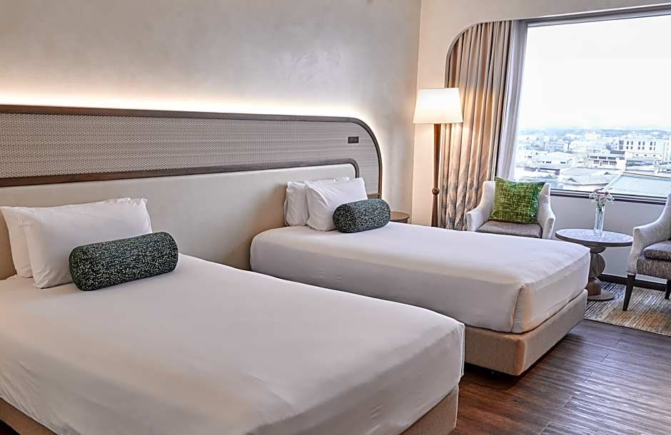 The room was very nice, airy, clean, and comfortable, with a lovely city view (and also good soundproofing so the city noises weren't intrusive). The mattresses were excellent. There were two chairs, and a good number of outlets. The bathroom was great. The breakfast buffet was excellent - a real highlight!
