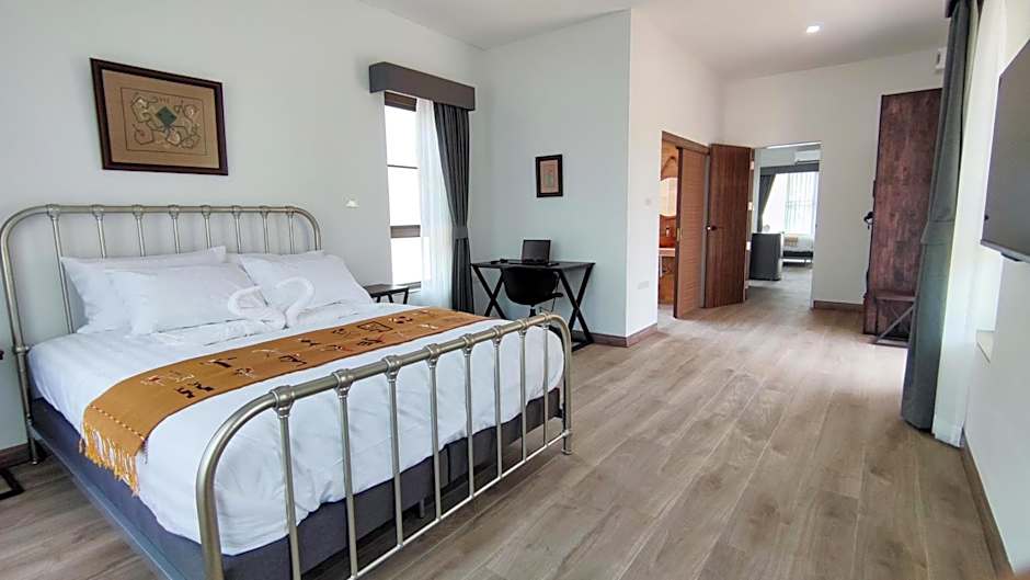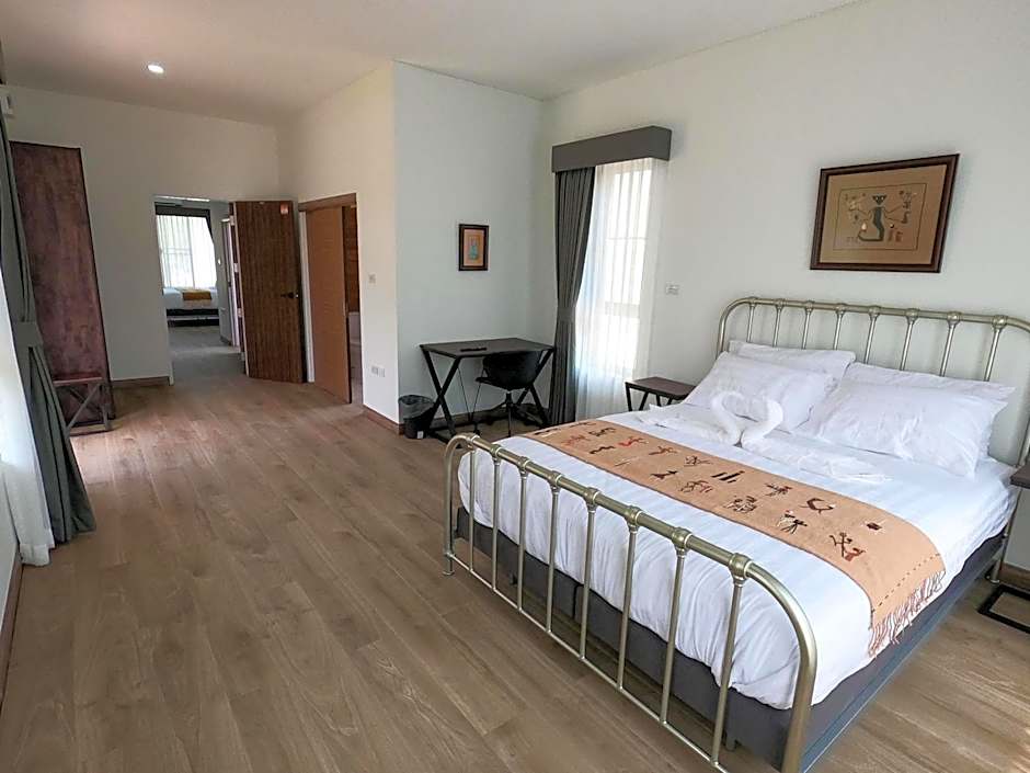 At Isan Golf & Adventure Hotel, there are several types of rooms available. The rooms are categorized as Deluxe Bungalows, Family Bungalows, and Superior Bungalows. All rooms are non-smoking and can accommodate 2 adults and 1 child. The bed size in all the rooms is a Queen size bed. The room sizes vary, with the Deluxe Bungalows being 538 sqft and the Family Bungalows being 1076 sqft.