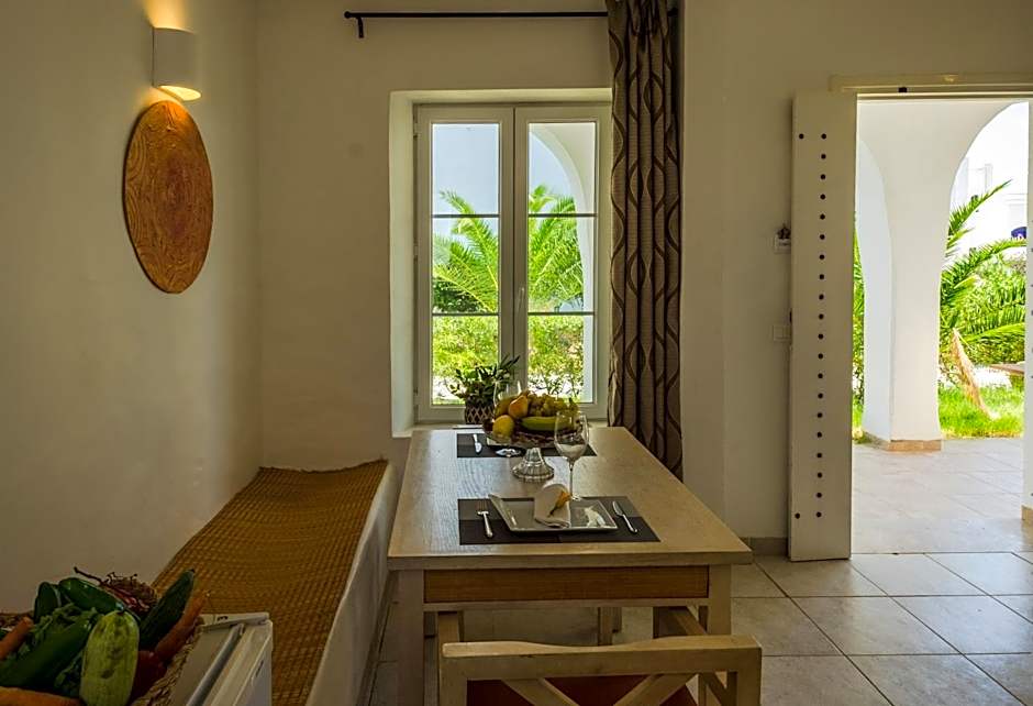 A lovely hotel resort with villas divided into large apartments with kitchen, seating area, tv and large comfortable bedrooms. The staff were very friendly and attentive, particularly Marwen (despite being an Arsenal fan and taunting me about Spurs!), Farhad and Sofiene and the rest. They arranged a hamam, laundry (my clorhes came back sealed in polythene and looking brand new!) and other requests. A very relaxing time spent by the pool drinking Pina Coladas!