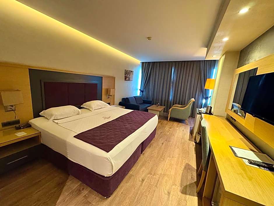 Sirin Park Hotel offers a variety of rooms including Standard with 1 double bed or 2 beds, Deluxe rooms, and Deluxe Studio with 1 king bed. All rooms accommodate 2 adults and 1 child, do not allow smoking, and have different bed sizes.