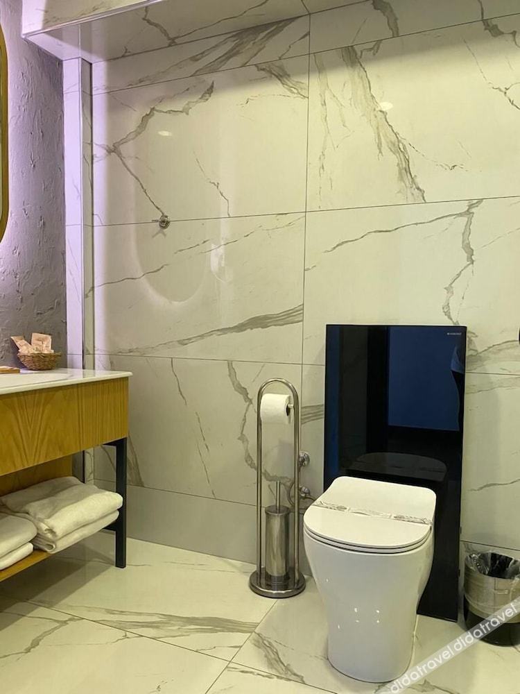 There were some very rusty bathroom accessories such as the toilet brush. The location of the hotel is next to a couple of night bars and can be a bit noisy when they are open - they were still preparing to open when we visited so no noise complaints. There is no elevator, as the rooms are located one floor above reception. We had to carry the pram up by hand, but the stairs aren't many and they are wide, which made the task easier.