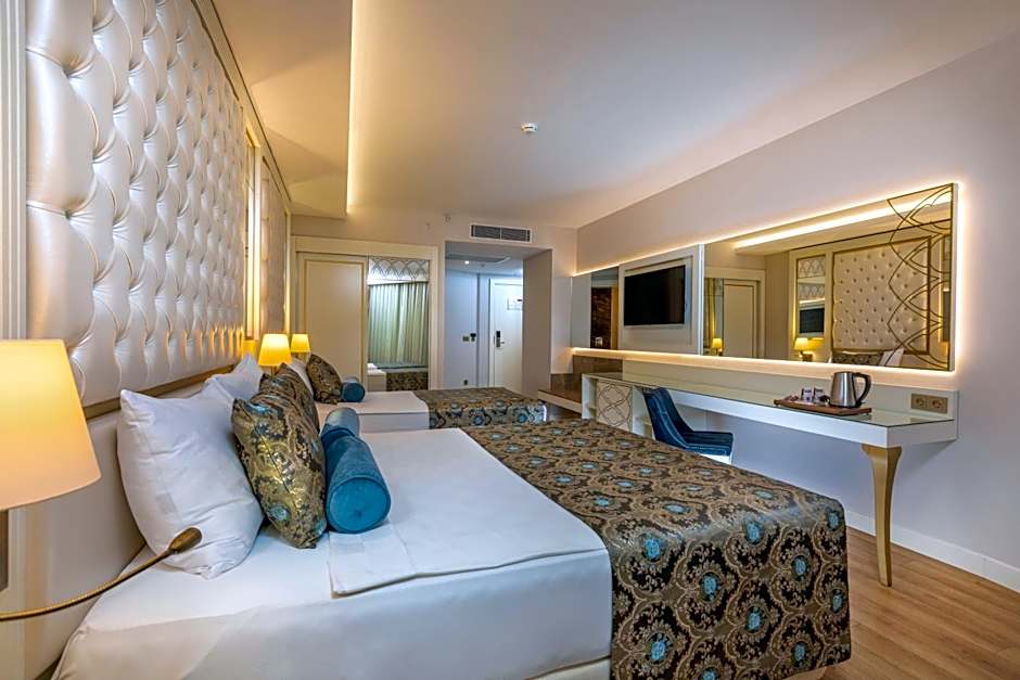 Welcome to the luxurious Haydarpasha Palace Hotel, a 5-star gem nestled in the beautiful Türkler area of Alanya, Turkey! With prices starting as low as €200 per night, this enchanting resort is your gateway to a sun-soaked paradise. Just 11.2mi from the bustling city center, you can enjoy the thrill of Alanya’s vibrant life while retreating to your serene, beachfront oasis. Gather your loved ones and dive into endless fun at the free water park, or lounge by the outdoor swimming pool as you sip on a refreshing cocktail.