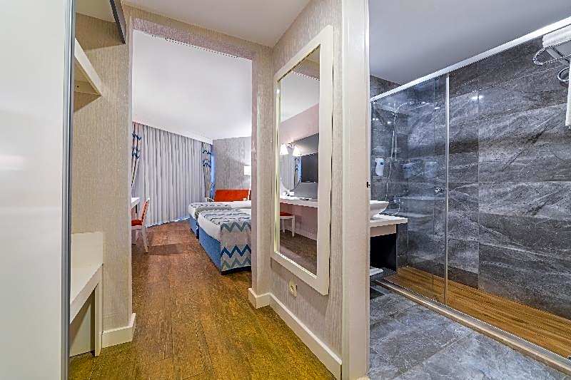 Set on the shores of Okurcalar Beldesi in Alanya, this 4-star oasis showcases a private beach area and a complimentary water park, perfect for sun and splash-filled days. Dining and relaxing come alive at Restoran #1, complemented by an on-site bar; evenings can glow with Live music/Performance events on select nights.