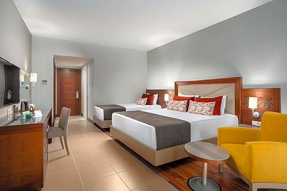 Inside, a family-friendly array of amenities awaits: indoor and outdoor swimming pools, a dedicated kids’ pool, and free Wi-Fi. Guest comfort is boosted by air-conditioned, soundproof rooms, a 24-hour front desk, and a fitness center. Wellness options include a Turkish/steam bath, steam room, and a sauna (free), with massage services and babysitting/child services available for an extra charge; the kid-friendly buffet and free kids’ meals add extra smiles for younger guests.