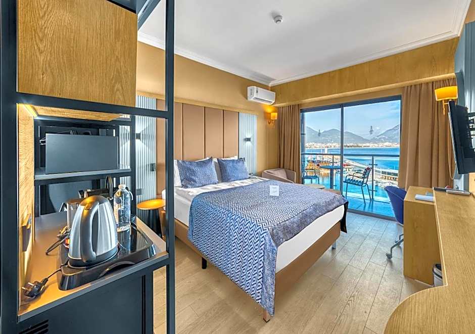 Super modern hotel with all the comfort you could ask for and impeccable service! The staff takes care of bringing your luggage to your room. The location is amazing (2 minutes/150m) from the Red Tower, right across from the harbor. 9 minutes by car from the train station and 20 minutes on foot from the cable car to Alanya Castle. The hotel is extremely clean, tastefully decorated, and the staff is incredibly attentive, pleasant, smiling, helpful, and friendly—truly the entire day and night team. Special mention to Huseyin, the outstanding receptionist, as well as Yaşar and Sevval and all the others! The view of the harbor from the balcony is stunning! Definitely worth it! The bedding is comfortable! Kettle in the room for tea and coffee. And let’s not forget the excellent breakfast, worthy of a 4-star hotel: absolutely delicious and very varied with sweet and savory options! Generous hours from 7 am to 11 am. They speak good English. The welcome is warm. I immediately felt at home and will gladly return! Highly recommended without hesitation +++