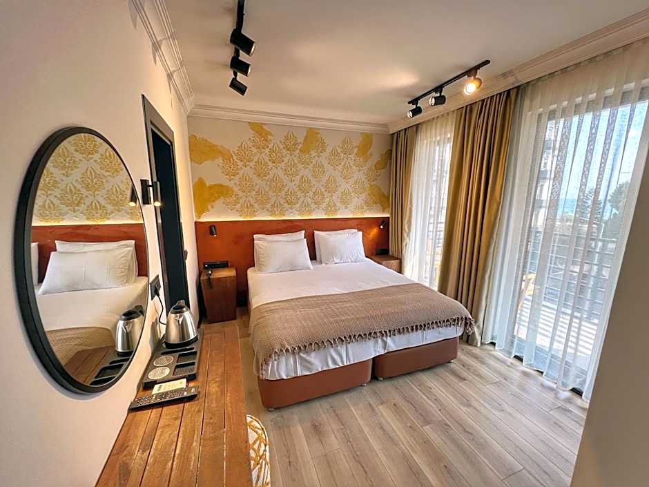 Oji Boutique Hotel in Alanya, Turkey, sits at 3 Altın Sokak, a beachfront property located about 1mi from the city center. The stay offers free parking, a restaurant, and an outdoor swimming pool, with free WiFi and room service to keep things convenient. Rooms feature air conditioning, a balcony with a view, free toiletries, and soundproofing, with upper floors accessible by elevator and non-smoking accommodations.