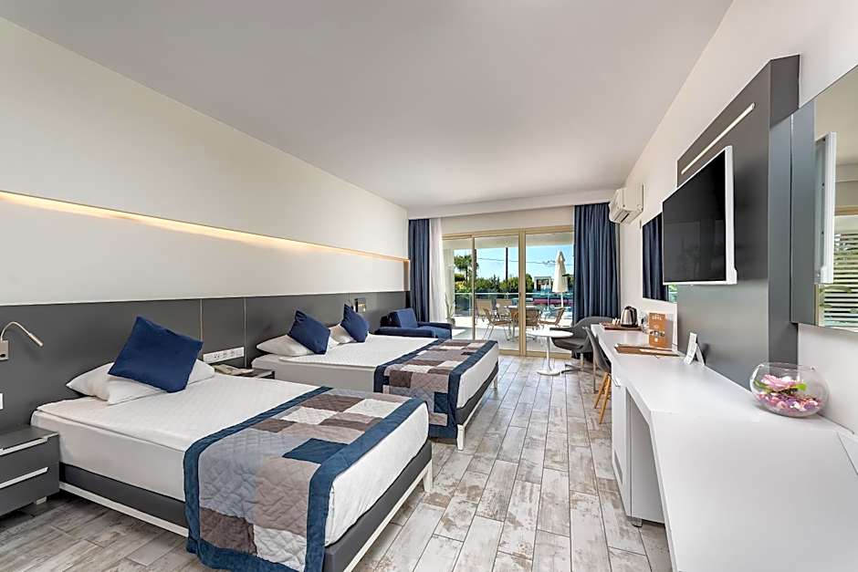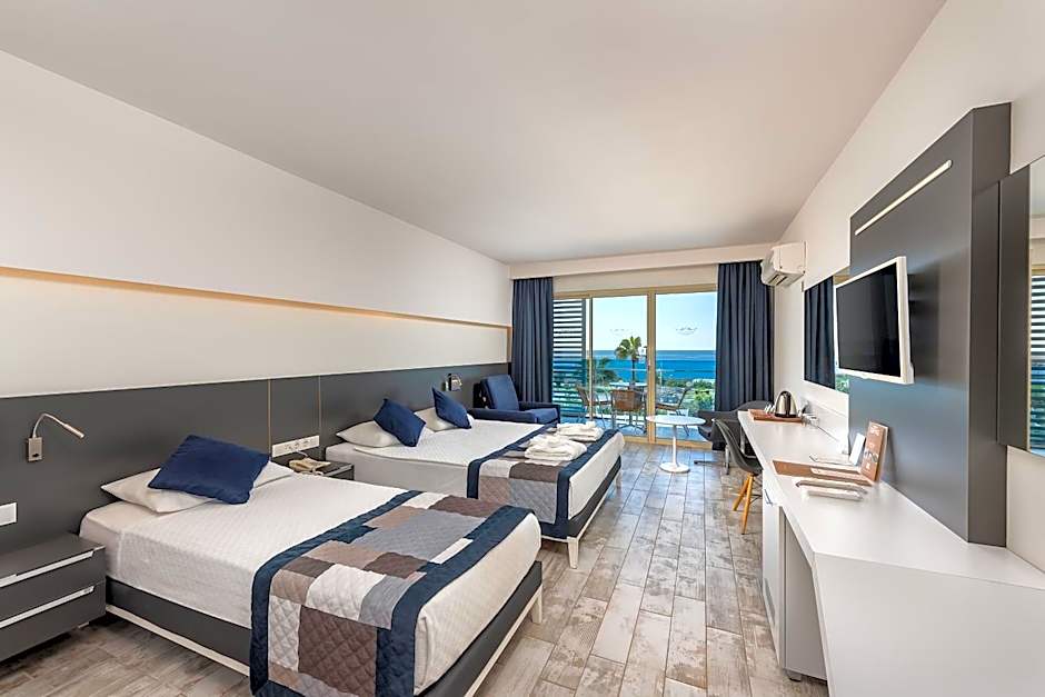 The spacious air-conditioned triple room features a flat-screen TV with satellite channels, a mini-bar, a tea and coffee maker, a wardrobe as well as sea views. The unit has 2 beds.