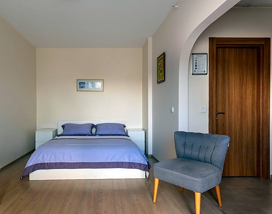 The room was pretty large and clean, comfortable. It was well-equipped room, and we could also use a washing machine for free. The location was a little far from the city center, but we could go to/from the center easily by bus. The neighborhood was quiet and had several stores and cafes, restaurants. The property had a 24-hour front desk and we could check in without problems even we arrived a little late.