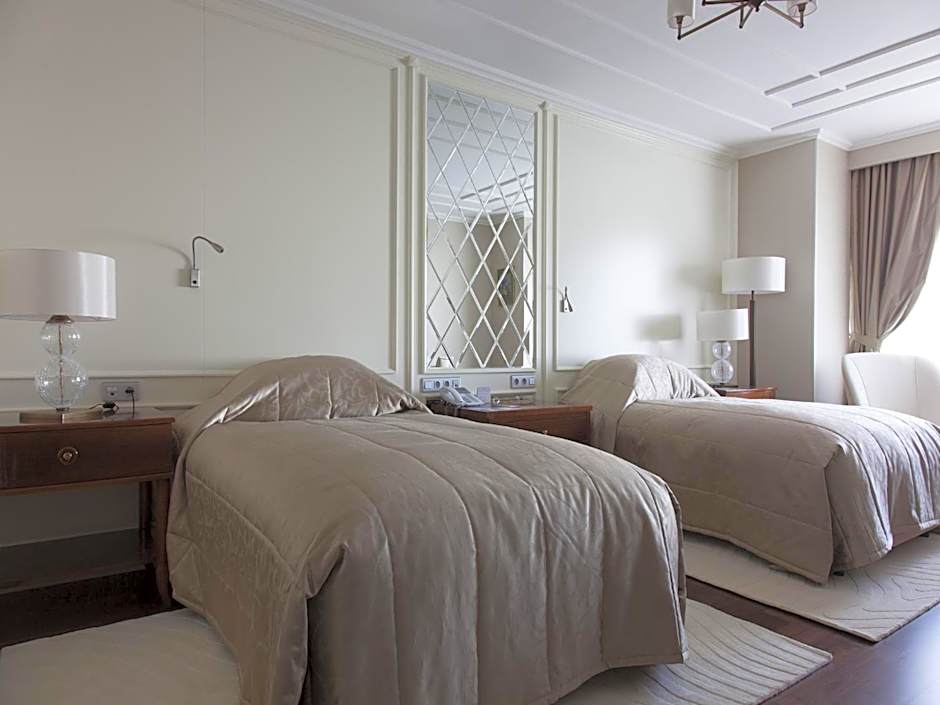 The Bilkent Hotel and Conference Center offers a variety of room types including Deluxe Twin, Corner Suite, Double Room, Standard Twin, Deluxe Double, Junior Suite, Suite, and Standard Double. The rooms can accommodate either single or double occupancy. Smoking is not allowed in any of the rooms. The bed sizes range from Twin to Queen to King, depending on the room type. Room sizes vary from 258 sqft to 969 sqft.