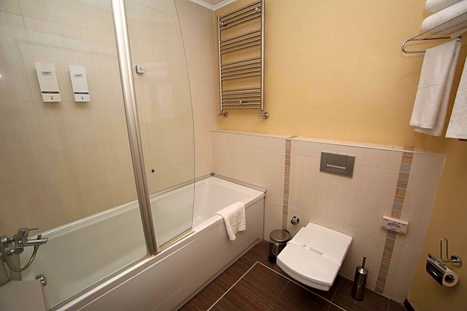 The air-conditioned suite has 1 bedroom and 1 bathroom with a shower and a hairdryer. The suite features carpeted floors, a seating area with a flat-screen TV, soundproof walls, a wardrobe as well as a quiet street view. The unit has 1 bed.