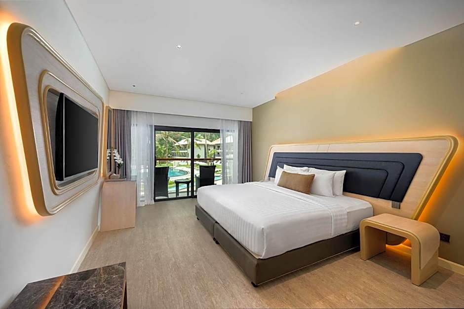 AMORA SUPERIOR Pool View is 301 square feet and includes a king-size bed 150-183 width plus balcony.