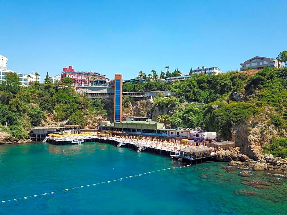 Address: Eski Lara Yolu Sirinyali Mah. 1512 Sk. The hotel features free parking, beachfront access, and on-site dining with a restaurant and bar. Wellness options include Spa/Wellness packages, Turkish/Steam Bath (free), Sauna (free), Steam room, and Spa tub, with some services at extra charges. Free private beach area, plus shuttle services (extra charges) and airport shuttle (extra charges), help guests explore and unwind.