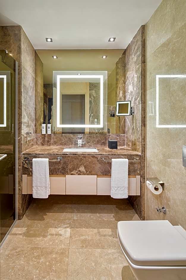 Villas on the Montgomerie Maxx Royal Golf Course push the limits of luxury and comfort. Three- bedroom Albatross Villa: This 1394 ft² two-story detached villa located within Maxx Royal Golf Course features 1309 ft² internal space, private outdoor pool and terrace, three bedrooms (two with French, one with twin beds), one living room, one dining room, a kitchen, one entrance hallway, one bathroom with Jacuzzi and shower, one bathroom with sauna and shower, one Turkish bath, two bathrooms with shower, a balcony.