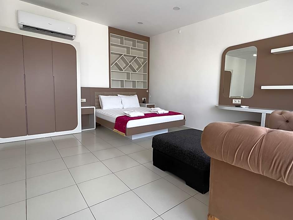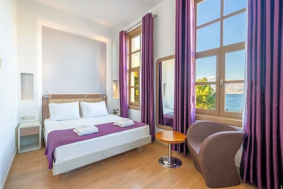 The outdoor pool is seasonal and adults-only, free to enjoy under Antalya’s sun, offering a refreshing dip after a day of exploring. A private beach area adds a seaside touch, inviting strolls along the shore and easy access to the water.