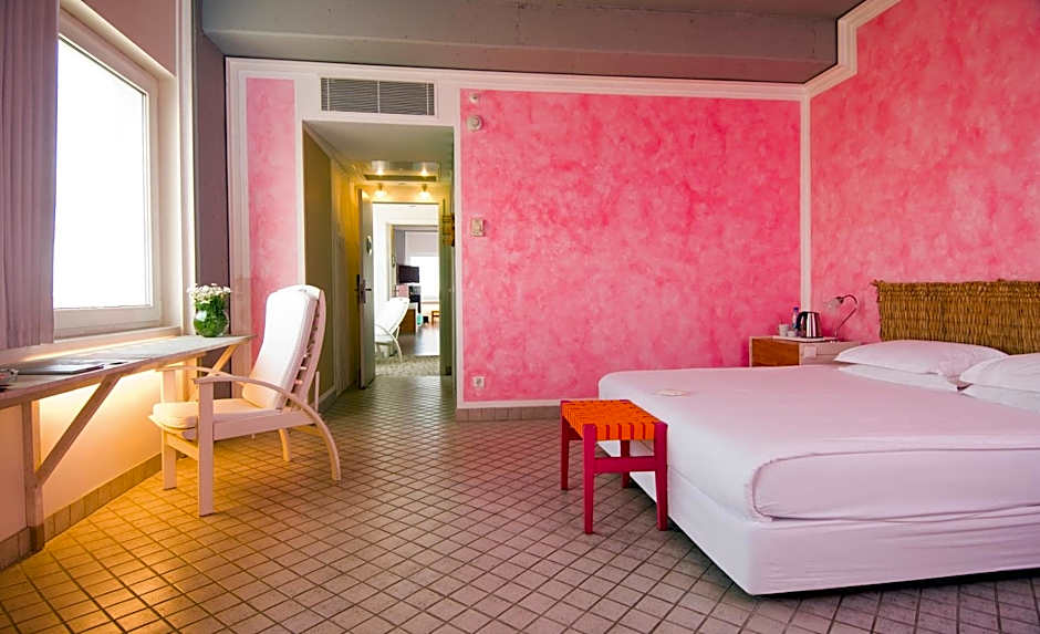 DOUBLE SEA VIEW is 377 square feet and includes a king-size bed 150-183 width plus extra beds on demand, hairdryer, and safe.