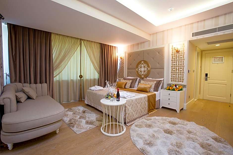 The resort boasts an array of fantastic amenities, including a free water park, a spa offering wellness packages, a private beach area, indoor and outdoor swimming pools, and complimentary Turkish/Steam baths. With free Wi-Fi, air conditioning, and beach umbrellas, guests are sure to have a comfortable stay. Whether you want to unwind at the spa, relax on the beach, or stay active at the fitness center, Fame Residence Kemer & Spa has something for everyone. Room service, a 24-hour front desk, and a bar are also available for your convenience.