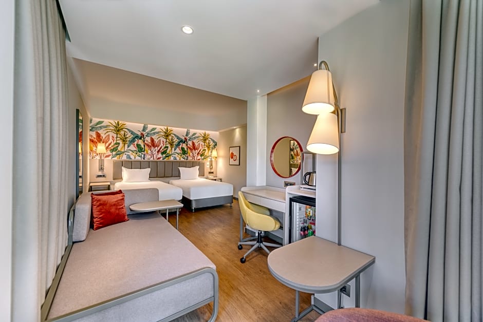 Club Standard Garden Up 2 Pax is 312 square feet and includes either 2 single beds 80-130 width or a double bed 131-150 width plus balcony, tea and coffee making facilities , safe, and slippers and is Wheelchair-accessible.