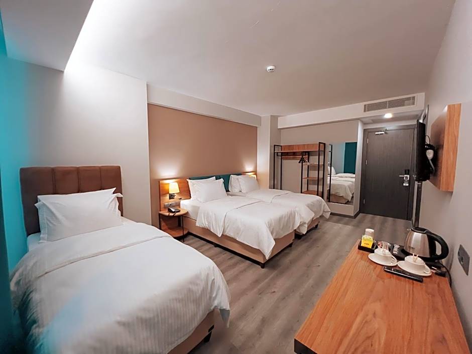 Deluxe accommodations come in multiple layouts, including King and Queen beds, as well as Twin configurations. There are options like a Twin plus Queen for three travelers, plus triple and quadruple setups for larger groups, and some Deluxe rooms offer a City View. For payment, cash and major cards—Visa, Mastercard, American Express, Bankcard—are accepted.