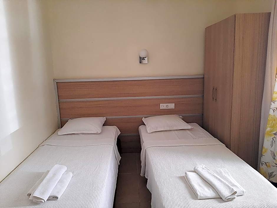 We want to thank the friendly staff and owner for a very good three night stay. This must be one of the smallest hotels on the Sarimsakli strip. And that is a positive thing. The location is perfect and on a very cozy part of Sarimsakli, where there are lots of shops and eating places around, and the very near beach is quite intimate and not enormously wide as the more western part. The the standard double room with balcony on the 2nd floor is small, and two persons must show consideration when moving around the wide bed to pass each other. The best part of the room is the spacious balcony with a partial sea view and a street view with lots of activity and entertainment from the opposite hotel to watch. The cleaning is fine and the wi-fi is OK most of the time. The protected parking for our scooter was perfect. So was the cold and warm water dispencer on the ground floor. A good and recomendable choice and quite affordable, as well.