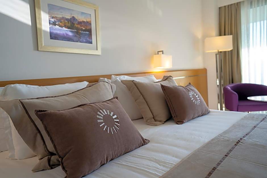 Nestled just 2,9mi from the lively heart of Çeşme, the ON'LIVE HOTEL offers a luxurious escape along Turkey’s stunning coastline. This 5-star oasis features a private beach area and multiple swimming pools—outdoor, indoor, and a relaxing hot spring bath—to keep you refreshed and entertained all day long. Whether you're lounging on the sun deck with beach chairs and umbrellas or enjoying the scenic mountain and garden views from your soundproof room, every moment promises comfort and escape.