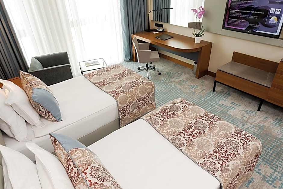 It was a fine hotel with big and comfortable rooms. The bed was a little hard for us. We had some few technical issues but I was solved in no time. There was a nice spa area. The restaurant offers delicious food. The hotel is located near town and a small mall. The hotel is located near Syrian border wich is interesting.