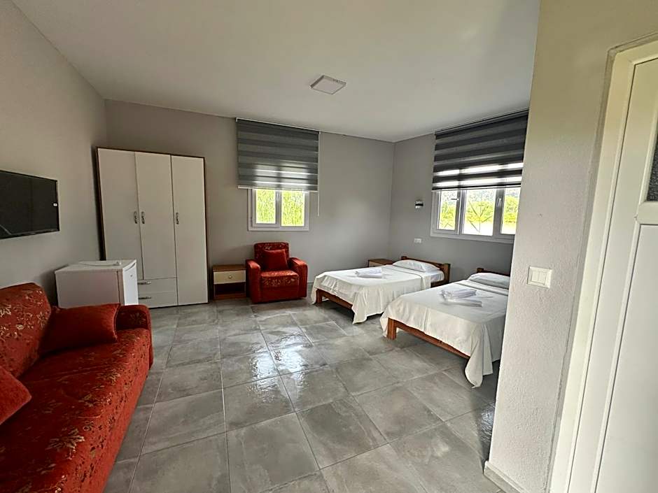 This quadruple room features a hot tub. The quadruple room provides air conditioning, a seating area, a balcony with garden views as well as a private bathroom featuring a shower. The unit offers 2 beds.