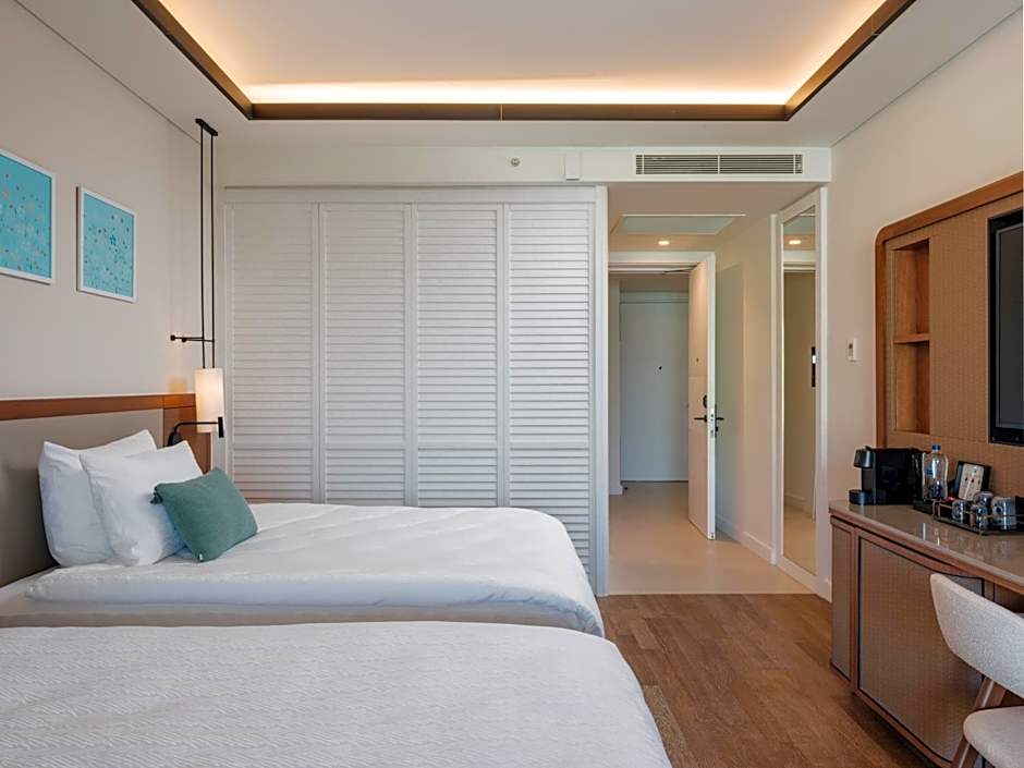 The spacious air-conditioned double room provides a flat-screen TV with satellite channels, soundproof walls, a mini-bar, a coffee machine as well as sea views. The unit offers 2 beds.