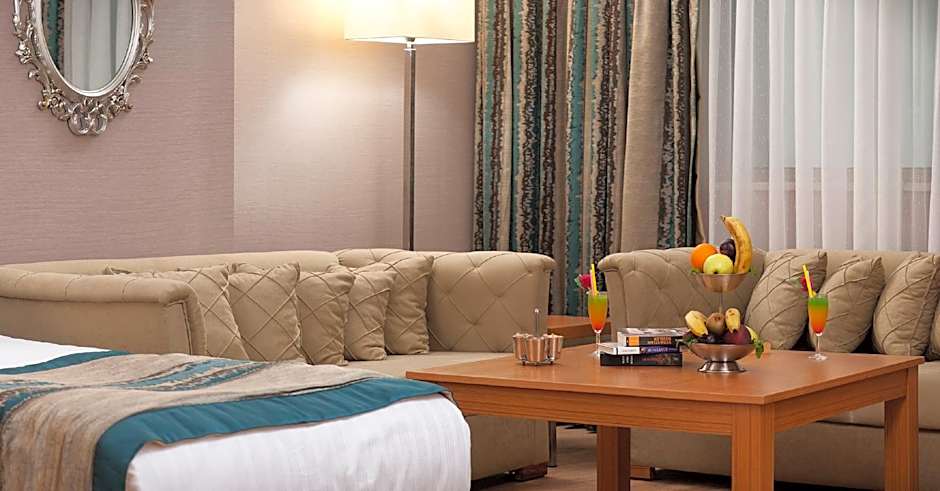 Located in the main building, this modernly decorated room has a single, a double bed, seating group and a sofa bed. It is equipped with a 40" satellite LED TV, WiFi, mini-bar, laminate floor, safe box and air conditioning. The private bathroom features special boucles, make up mirror and a hairdryer. A complimentary coffee&tea setup is included.