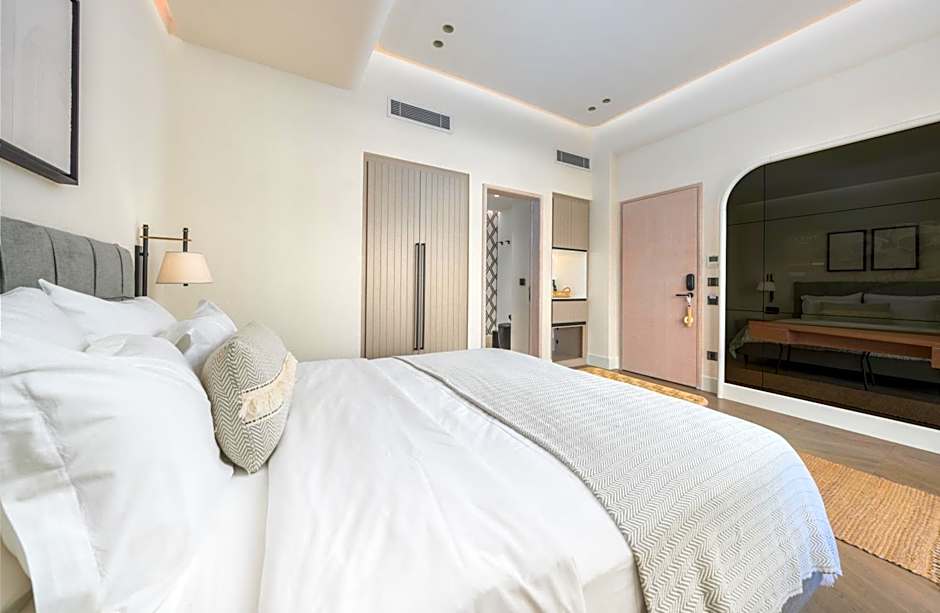 The hotel offers Superior, Classic, Premium, Superior Plus, Loft, Deluxe, and Penthouse rooms, along with Junior, Family, and Suite with Private Pool suites. Room occupancy varies from accommodating 2 adults and 1 child to 4 adults and no children. All rooms except the Suite with Private Pool are non-smoking. Bed sizes range from double and queen to sofa beds, while room sizes vary between 215 and 700 sqft, with the largest in the Suite with Private Pool.