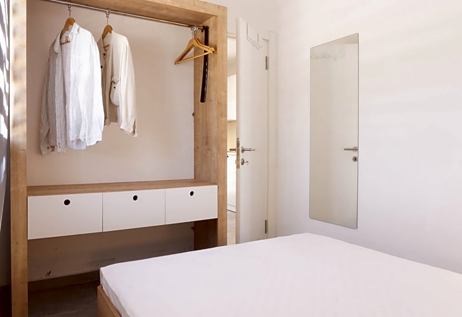 APT 25m2 is 269 square feet and includes a king-size bed 150-183 width plus living room, balcony, terrace, satellite tv , hairdryer, tea and coffee making facilities , and slippers.