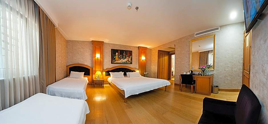 The Aprilis Gold Hotel offers various types of rooms including standard rooms, deluxe rooms, and suites. Occupancy ranges from single to quadruple, with some rooms accommodating extra beds. Smoking is prohibited in all rooms. Bed sizes vary, with options including king, queen, and twin beds.