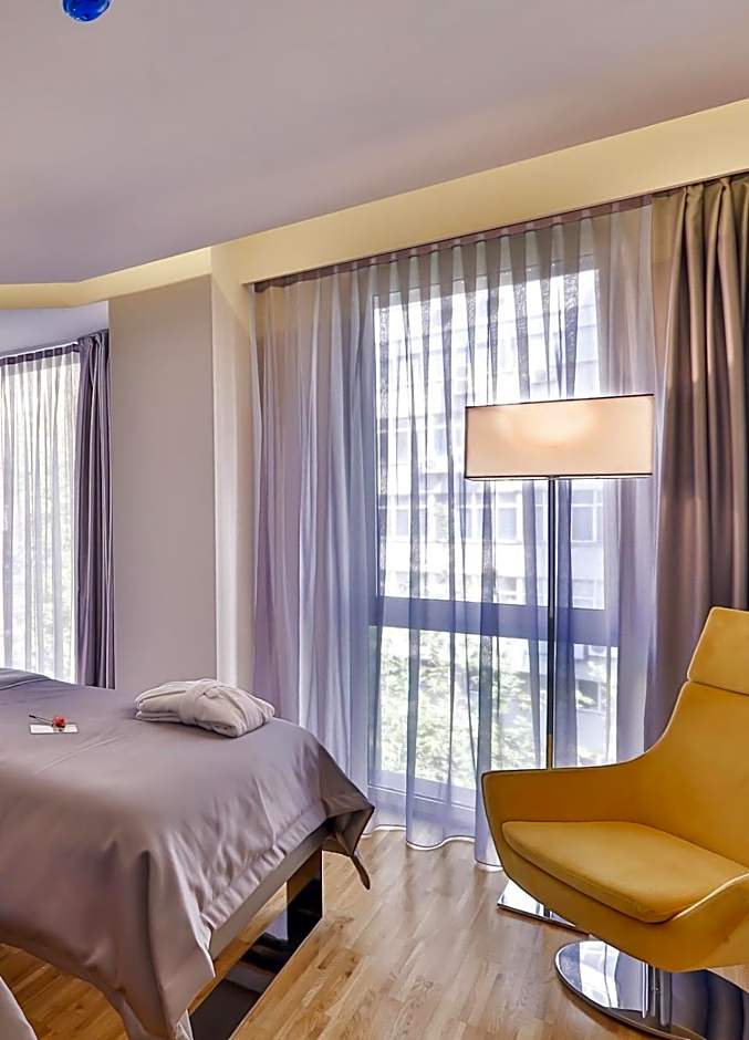 Guest comforts include free Wifi, room service, and a lineup of spa and wellness options—Turkish/Steam Bath (extra charges), Steam room, Spa (extra charges), Sauna (extra charges), Massage (extra charges)—plus a hot tub for extra unwind time. Practical touches include Airport shuttle (extra charges), Shuttle service (extra charges), and air conditioning, while on-site amenities extend to a Tour desk, Terrace, Soundproof rooms, 24-hour front desk, Non-smoking rooms, Elevator, Balcony, Bathtub, Upper floors accessible by elevator, Extra long beds (>6.5 ft), Free toiletries, and extra soundproofing for a peaceful stay.