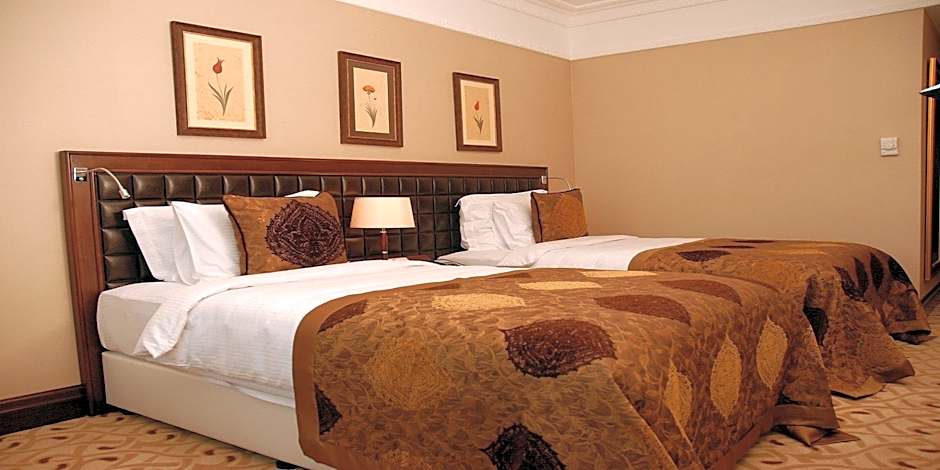 The hotel offers a variety of room types including 1 King Bed Suite, Premium, 1 Twin Bed, Standard King Room, Standard Twin Room, Standard Double or Twin Room, Standard Twin Room with Lounge Access, Premium King Room with Lounge Access, Standard King Room with Lounge Access, Presidential Suite with Spa Bath and Sauna, Corner King Room, and Suite with Spa Bath - Club Lounge Access. Most rooms accommodate 1-2 adults (some with children) and offer non-smoking options. Bed sizes range from twin to king, and room sizes vary. Some suites feature additional amenities such as jetted tubs or lounge access.
